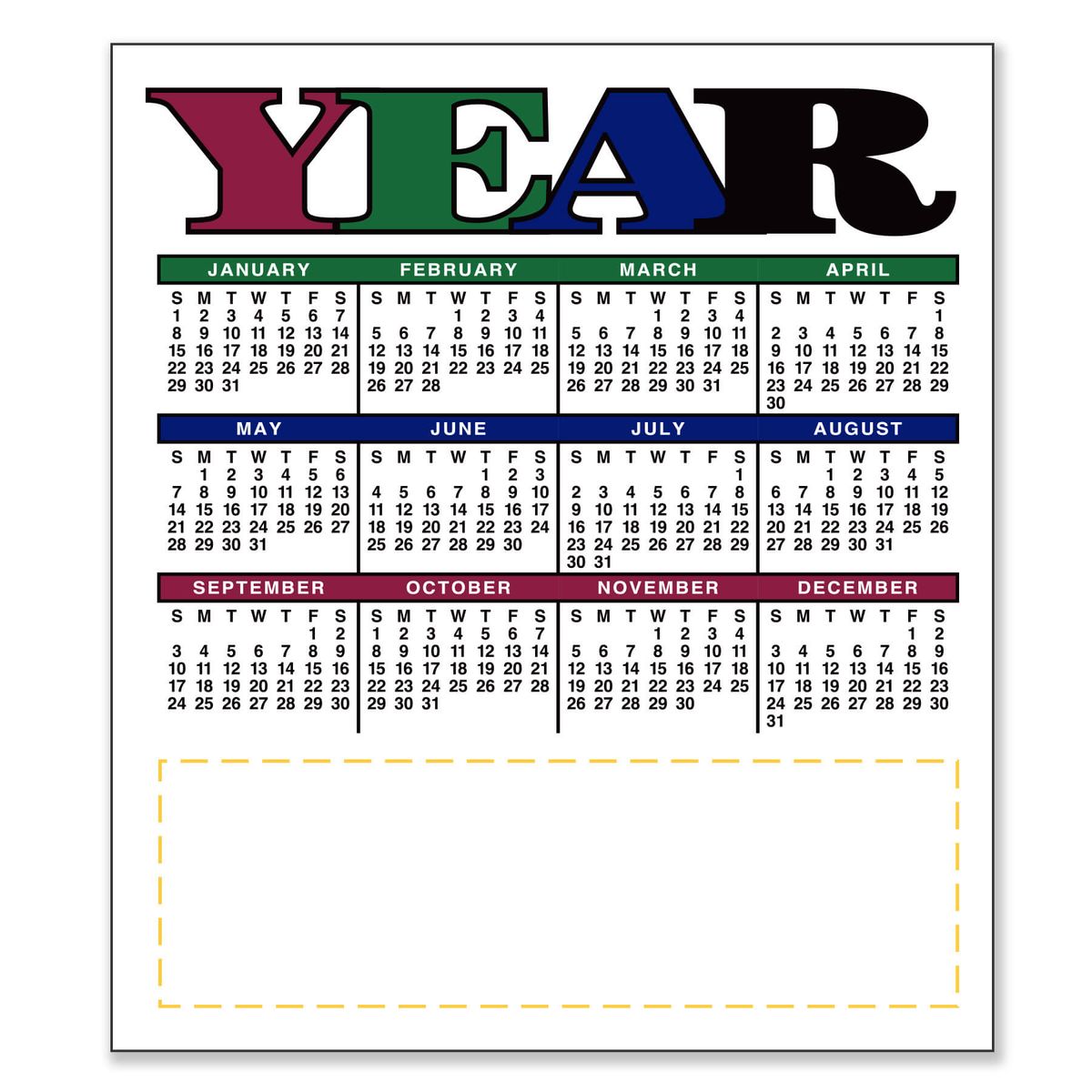 3.5" x 4" Small Magnetic Calendar 20 Mil